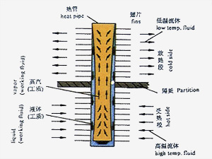 熱管是一種高導(dǎo)熱性能的傳熱原件,它的主要任務(wù)是從加熱段吸收熱量,通過(guò)內(nèi)部相變傳熱過(guò)程,把熱量輸送到冷卻段,從而實(shí)現(xiàn)熱量轉(zhuǎn)移,具有很高的導(dǎo)熱性,良好的等溫性、冷熱兩側(cè)的傳熱面積可任意改變、可遠(yuǎn)距離傳熱、可控制溫度等優(yōu)點(diǎn)。目前應(yīng)用于化工、電力、冶金、石化、鍋爐、建材、輕紡、環(huán)保、干燥等行業(yè)中,已取得了良好的使用效果。